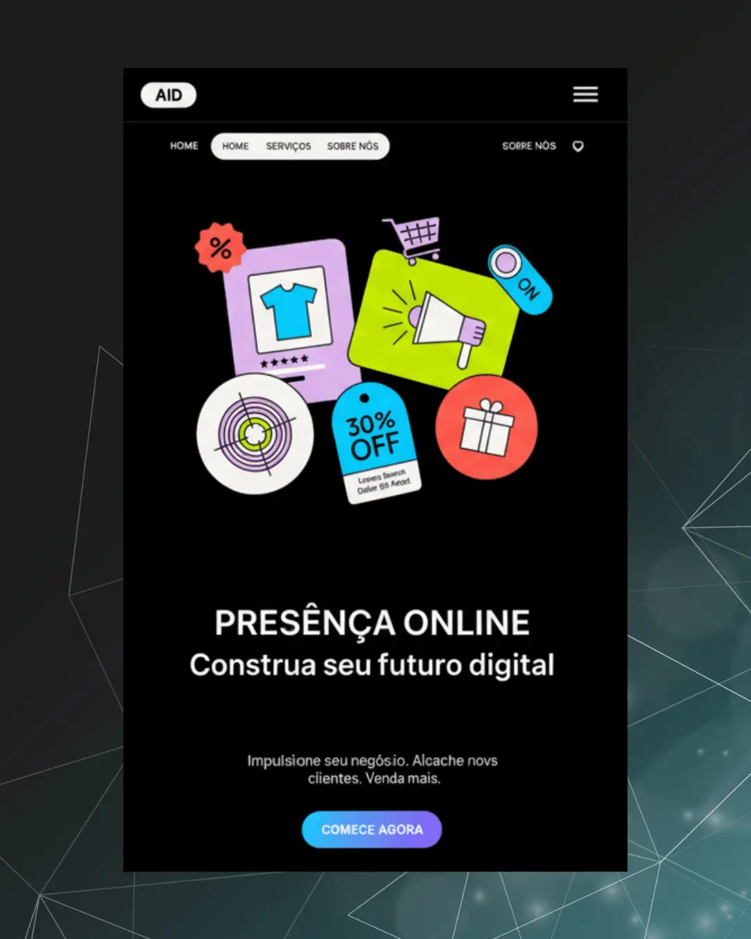 Institucionais, Landing Pages, Blogs e E-commerces.